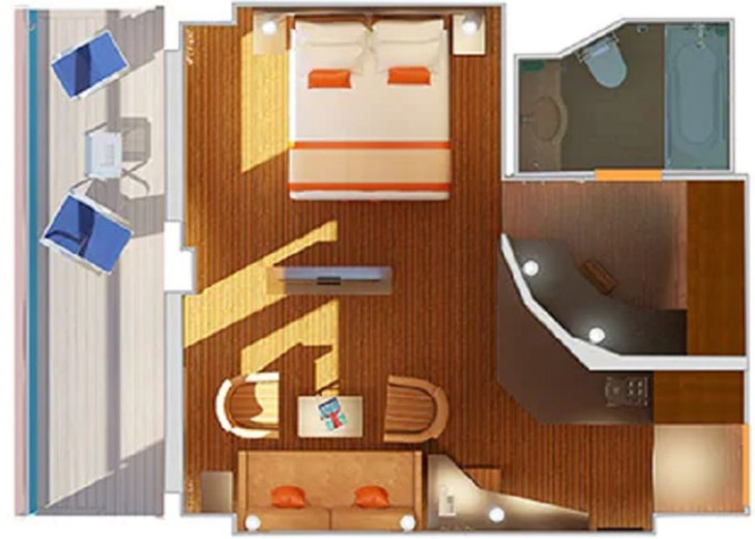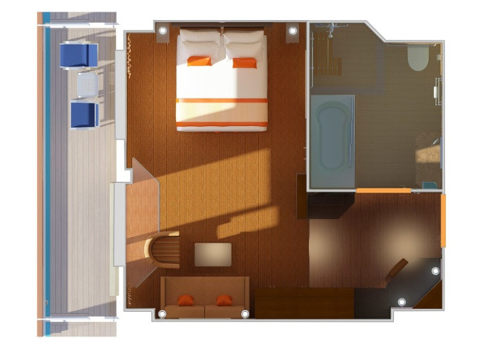 | 8S - Kajuta s balkónom Cloud 9 Spa 18 m² + balkón 3 m². 11. paluba vpredu. Voľný vstup do Spa a balíček Cloud 9 Spa. | 1 090 € 545 € za osobu |