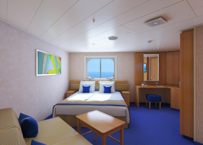 Vybavenie všetkých kajút: kúpeľna s WC, telefón, zástrčky 110 AC, nastaviteľná vzduchová klimatizácia, posteľ Carnival Comfort, sušič na vlasy, bezpečnostná schránka, skriňa, stolík, TV s plochou obrazovkou a mini chladnička (bez náplne).