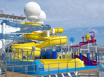 - Využívanie fitness centra, sauny, bežeckej dráhy, bazénov, víriviek, tobogánov a vodného parku (na vybraných lodiach), mini golf, basketbal, volejbal, stolný tenis, knižnica