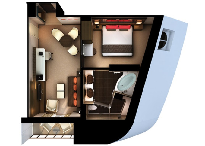 | H2 - The Haven Deluxe Owner's Suite 86 m² / balkón 18 m². 16. paluba vpredu. Max 4 osoby. Výhody The Haven. | 12 888 € 6 444 € za osobu |