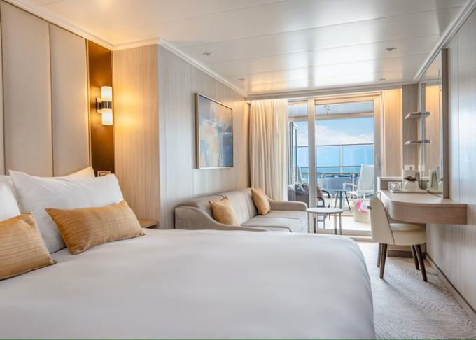 | S2 - Signature Owner Suite 59 m² (vrátane balkonu). 10. paluba v strede, 16. paluba na korme. Max 4 osoby. Šatník, kúpeľňa s vaňou, oddelené WC, kávovar Nespresso. Výhody Signature Collection. | 9 538 € 4 769 € za osobu |