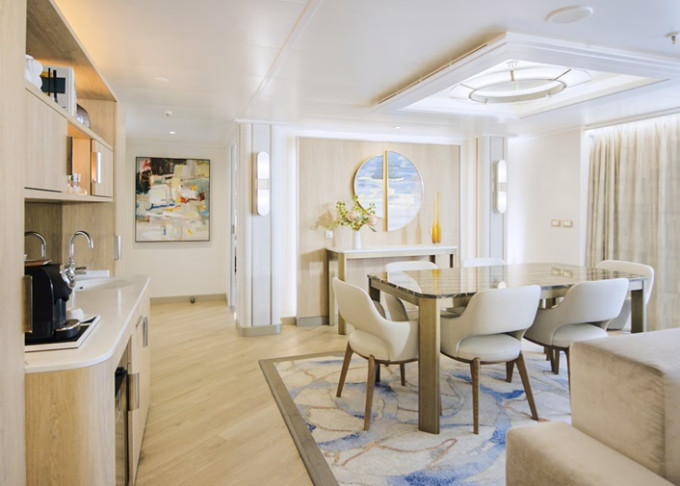 | S0 - Signature Sky Suite 117 m² (vrátane balkónu). 16. paluba na korme. Max 5 osôb. Šatník, 2 spálne, obývačka s jedálenskou časťou, 2 kúpeľne (jedna so sprchou), šatník, kávovar Nespresso. Výhody Signature Collection. | 15 856 € 7 928 € za osobu |