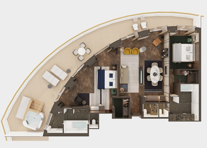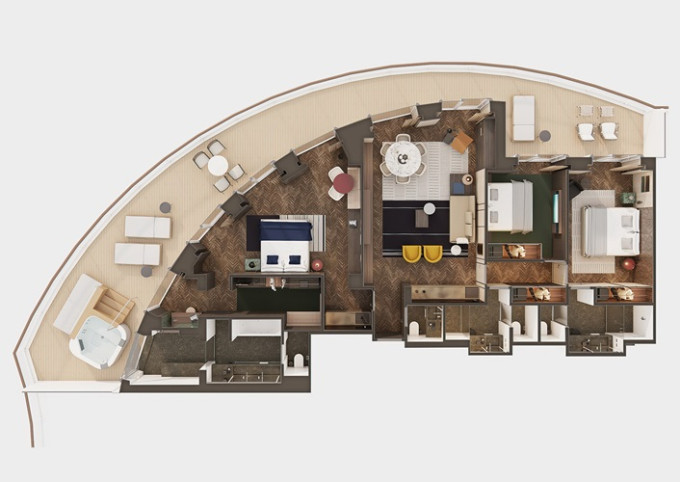 | H8 - The Heaven Duplex Suite Dvojpodlažný apartmán. 84 - 84 m² / balkón 10-11 m².15/16. paluba. Max 5 osôb. Výhody The Haven. | 15 548 € 7 774 € za osobu | ||
