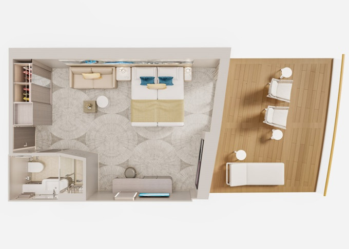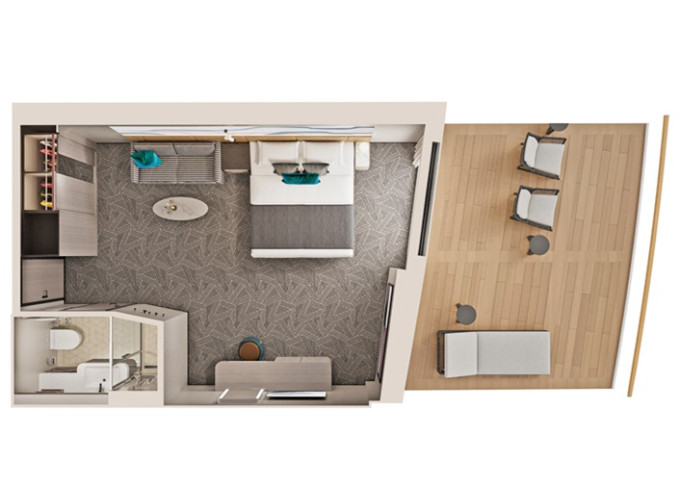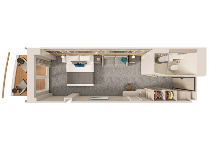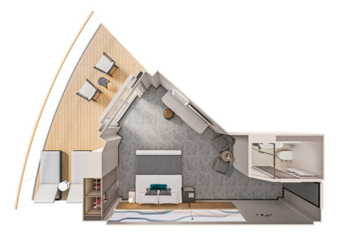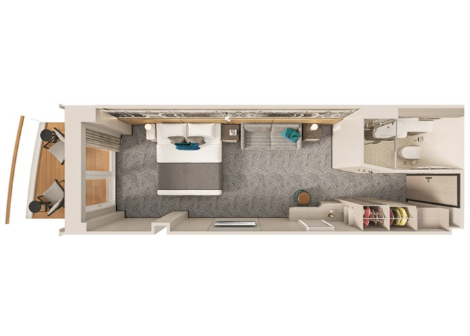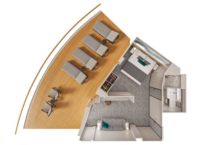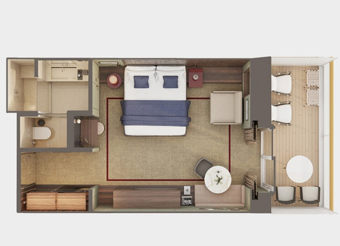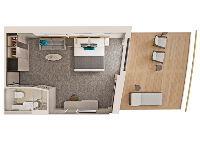 | MB - Club Suite Forward-Facing 22-25 m² / balkón 7 m². 9. až 13. paluba - vpredu. Max 2 osoby. Výhody Club. | 4 218 € 2 109 € za osobu | ||