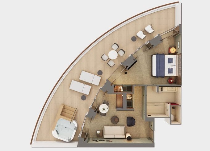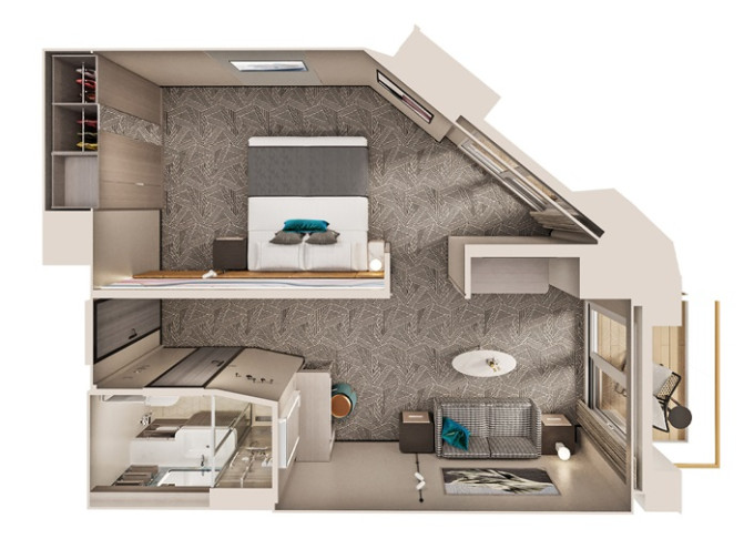 | H5 - The Haven Owner's Suite 50-57 m² / balkón 10-12 m².12. paluba, Max 4 osoby. Výhody The Haven. | 11 218 € 5 609 € za osobu | ||