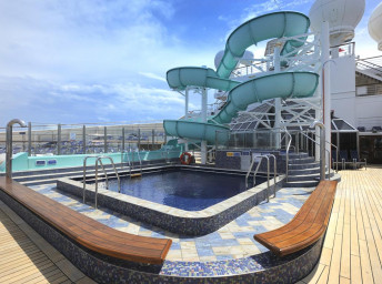 - Využívanie fitness centra, sauny, bežeckej dráhy, bazénov, víriviek, tobogánov a vodného parku (na vybraných lodiach), mini golf, basketbal, volejbal, stolný tenis, knižnica